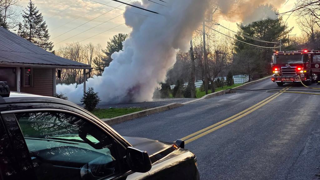 | At 18:55 this evening, Pioneer Fire Company was dispatched to the 300 block of Ridge Avenue for a reported vehicle fire, with multiple callers reporting the incident.